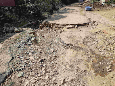| वनवासी हनुमान मंदिर से ठीक पहले मौजूद खराब सड़क |